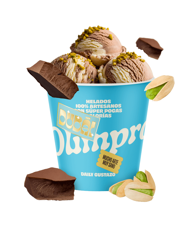 • Combinación de chocolate intenso, crunch de pistacho y knafeh dorado