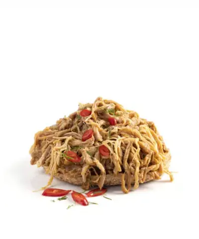 Con una base ligera y crujiente gracias al psyllium, konjac y la clara de huevo.
