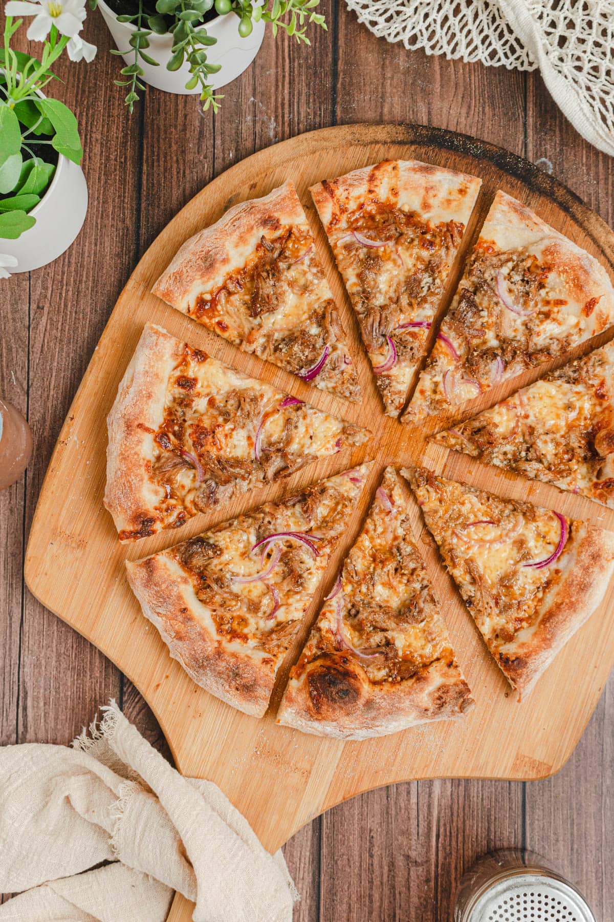 | Base (harina de TRIGO, agua, SÉMOLA DURA, aceite de oliva virgen extra, sal, potenciador de la harina, levadura, extracto seco de MALTA), Carne de cerdo (89%), Salsa BBQ (Agua, Azúcar, Preparado de BBQ , Sazonador de BBQ (Especias, azúcar, sal) y aroma de humo, QUESO bajo en grasa (LECHE pasteurizada, almidón, sal, fermento láctico, cuajo microbiano), salsa de tomate (pulpa de tomate, sal, orégano), especias.